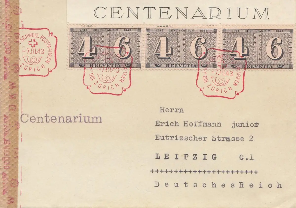 Suisse: 1943: Zürich Centenarium après Leipzig, censure