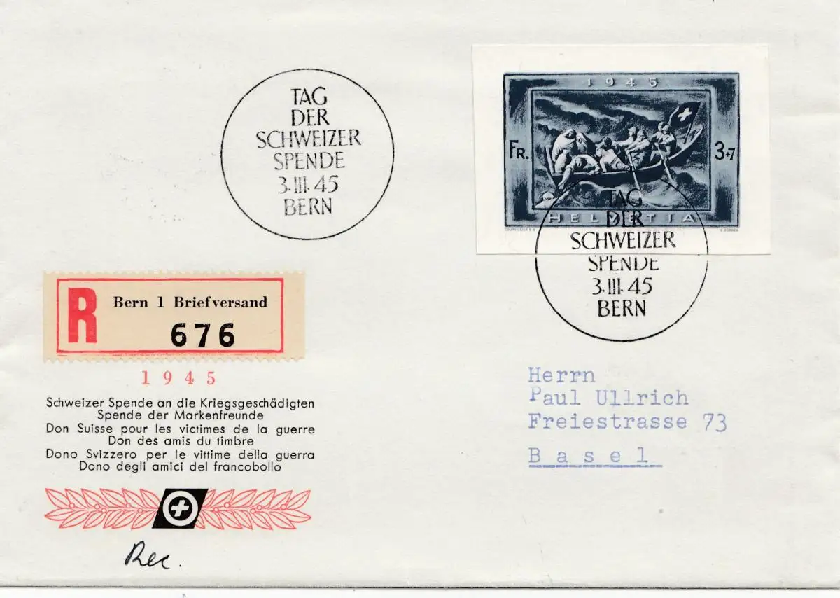 Suisse: 1945 Inscrivez-vous: Journée du don pour les blessés de guerre