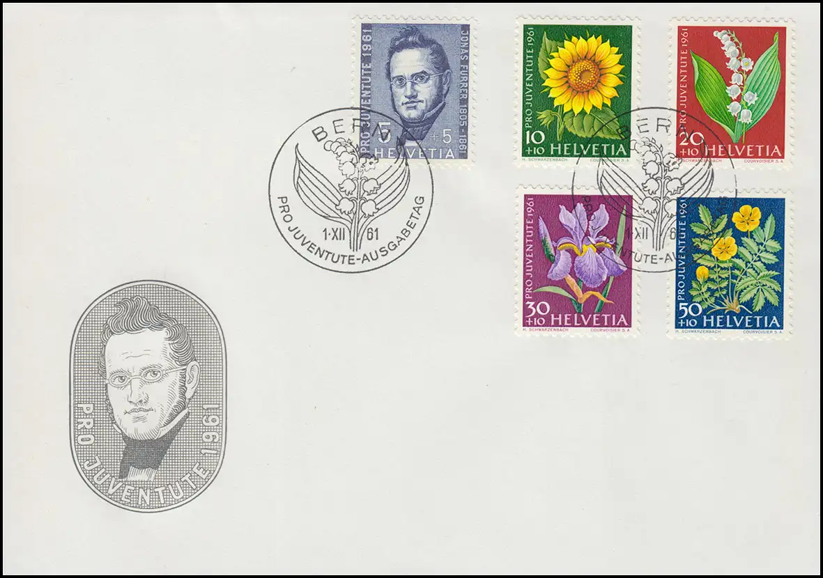 Suisse 742-746 Par Juventute 1961 Fleurs, Bijoux-FDC Berne 1.12.61