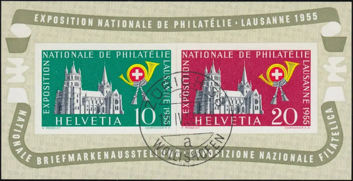 Suisse Block 15 Exposition Lausanne 1955: Tampon du jour ZÜRICH 38 - 12.4.1955