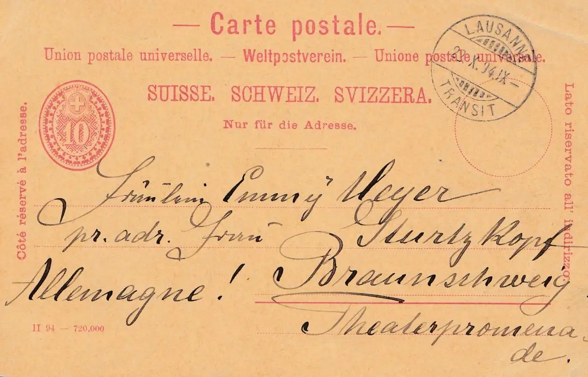 Suisse: Toute l'affaire 1894: Lausanne vers Braunschweig