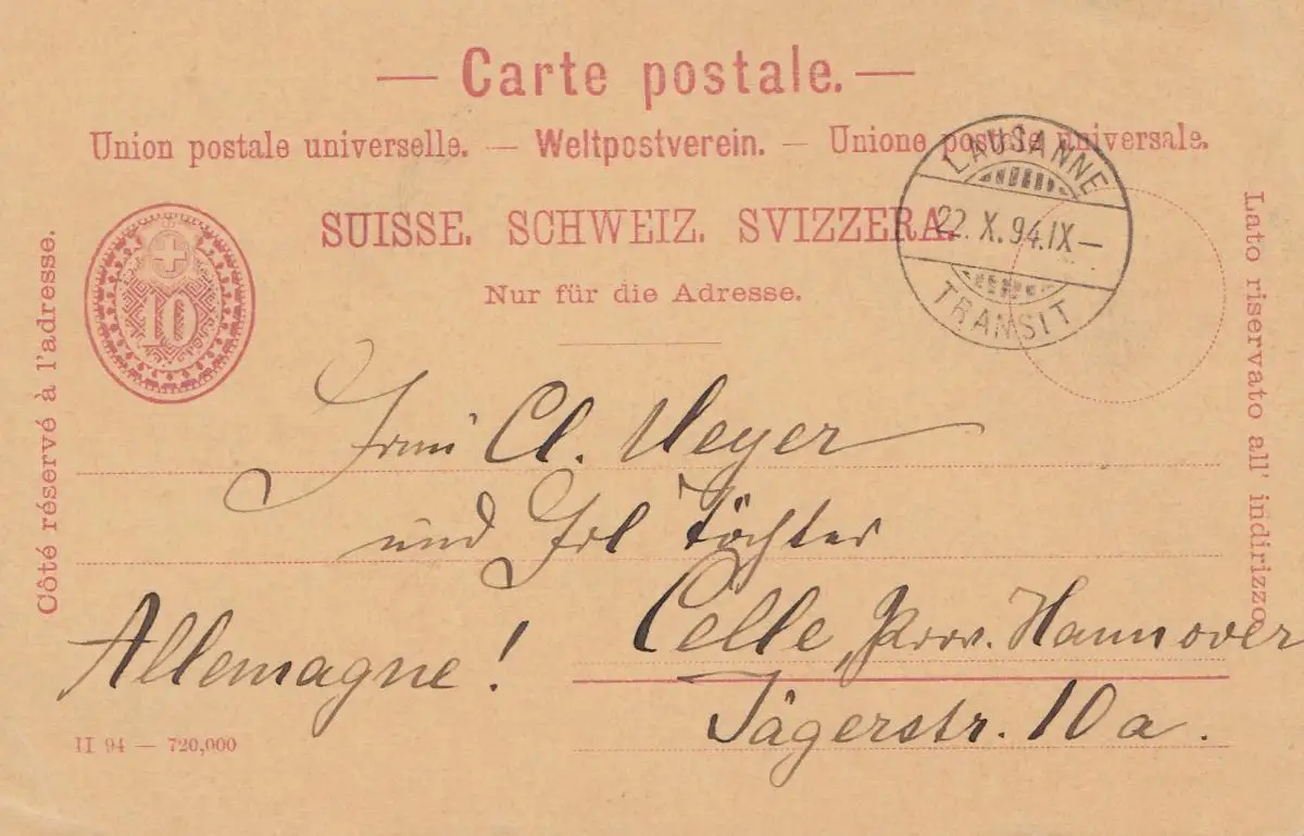 Suisse: Toute l'affaire 1894: Lausanne vers Celle