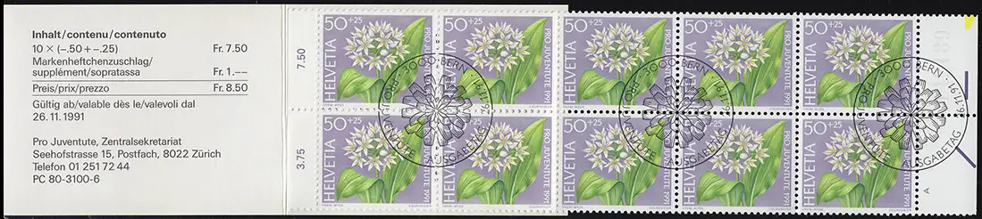 Suisse Carnets de marques 0-91, Pro Juventute Fleur de bois Bärlauch 1991, ESSt