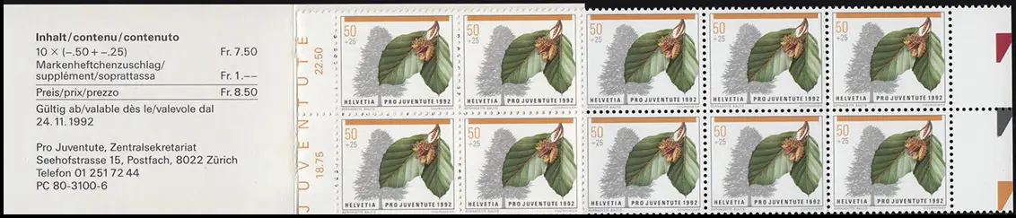 Suisse Carnets de marque 0-93, Par Juventute Forêts Livre rouge 1992, **