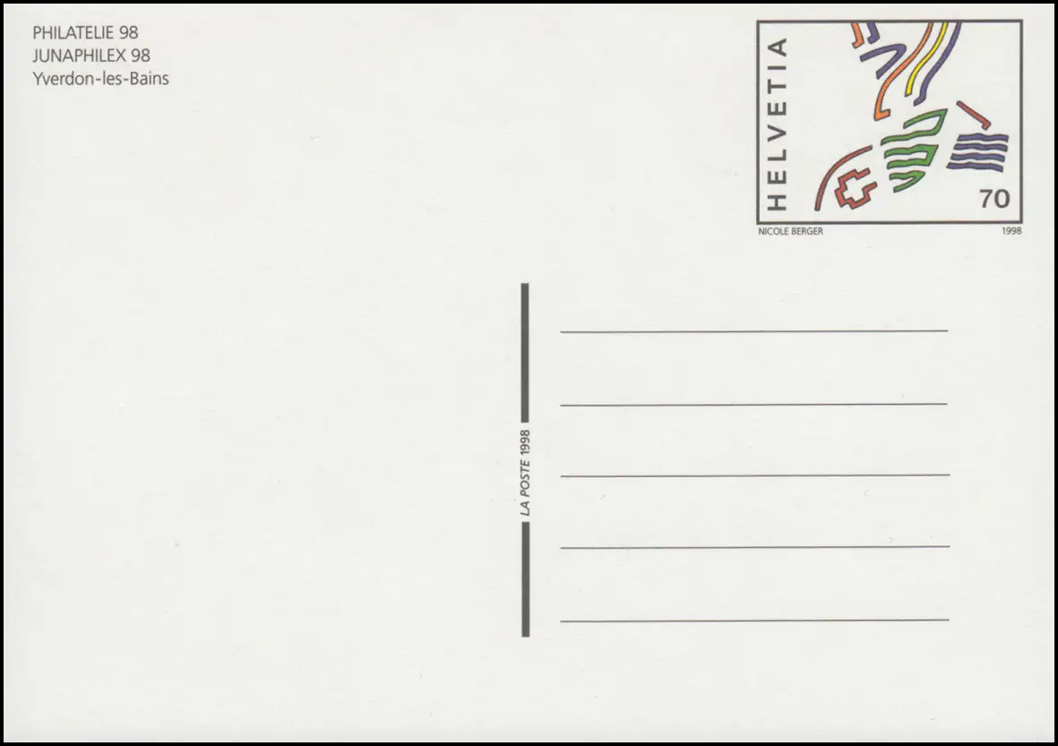 Suisse Carte postale P 265 PHILATELIA 98 / JUNAPILEX 98, ** frais de port
