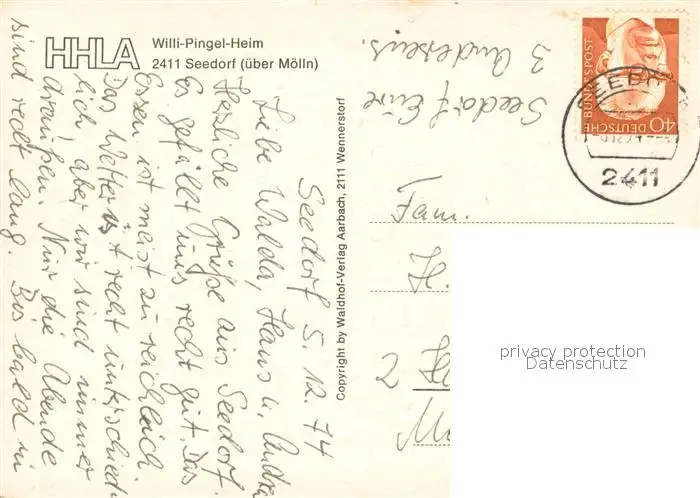 Seedorf_Lauenburg Willi Pingel Heim am Schaalsee Seedorf_Lauenburg postalisch gelaufen 1974 Erhaltung siehe scans [WerneD78] WernPID7