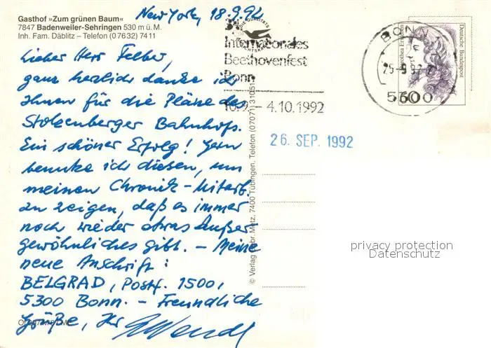 Sehringen Gasthof Zum gruenen Baum Sehringen postalisch gelaufen 1992 Erhaltung siehe scans [WerneD78] WernPID7