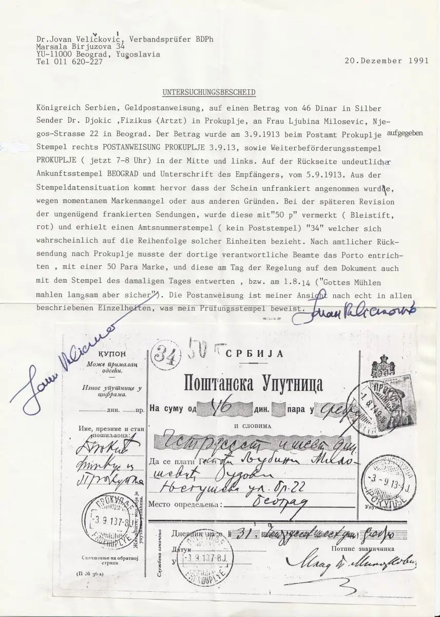 Serbie: 1913: Carte de colis pour Belgrade, examiné