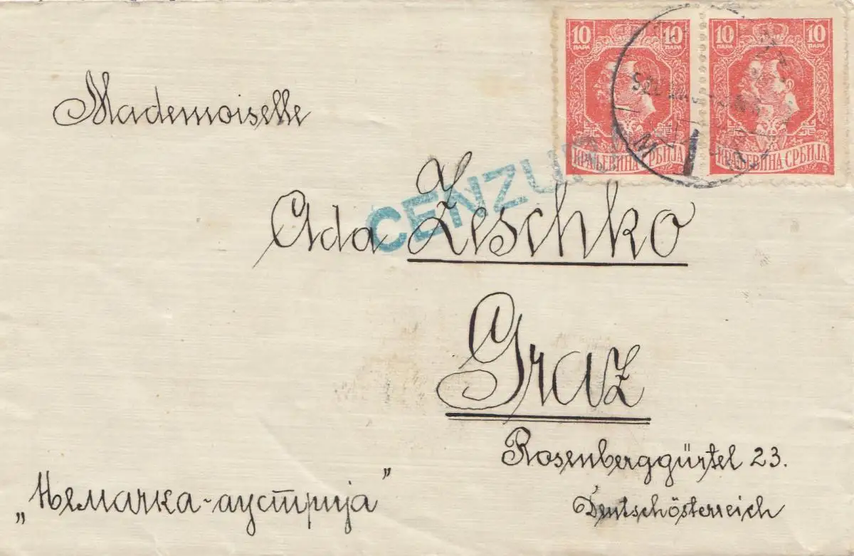 Serbie: 19xx: Lettre à Graz, censure