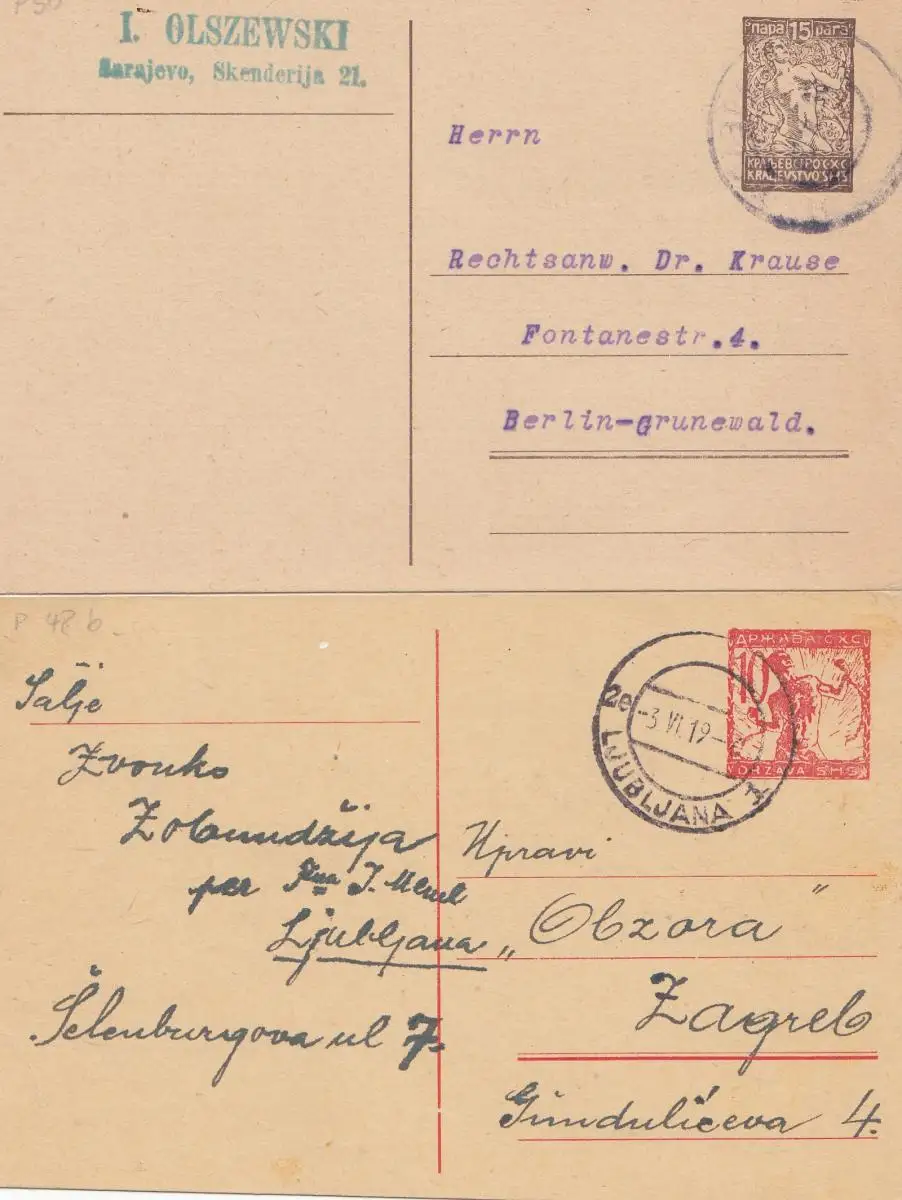 Serbie: 4x entier à 1920, couru
