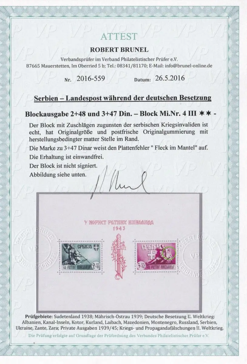 Serbie: feuillet numéro 4 III, frais