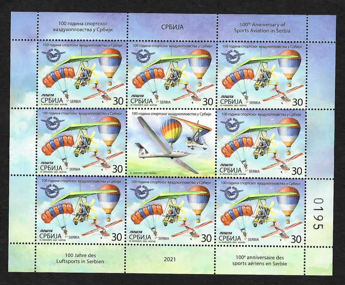 Serbien 2021: 100 Jahre Luftfahrt, postfrischer Kleinbogen