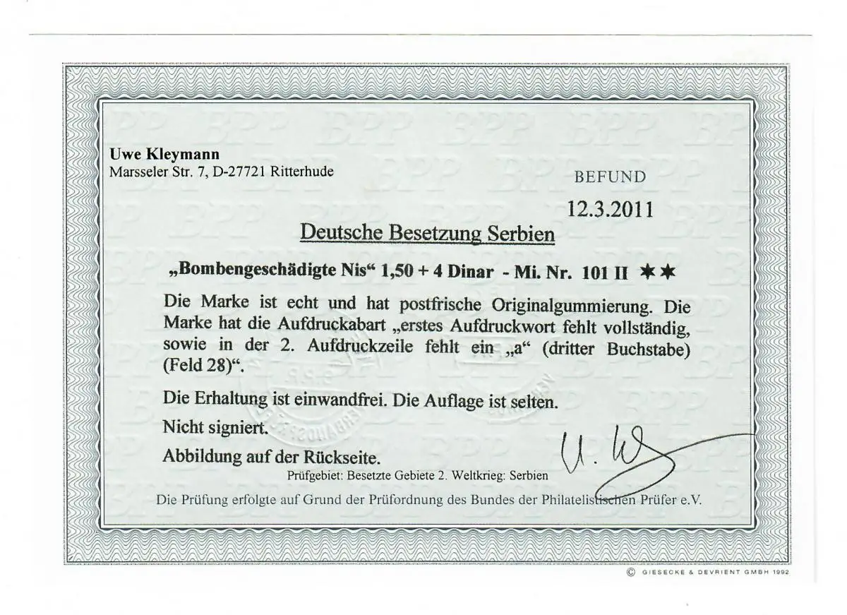 Serbie Min. 101 II, post-fraîchissement, ** Désinscription, BPP résultat