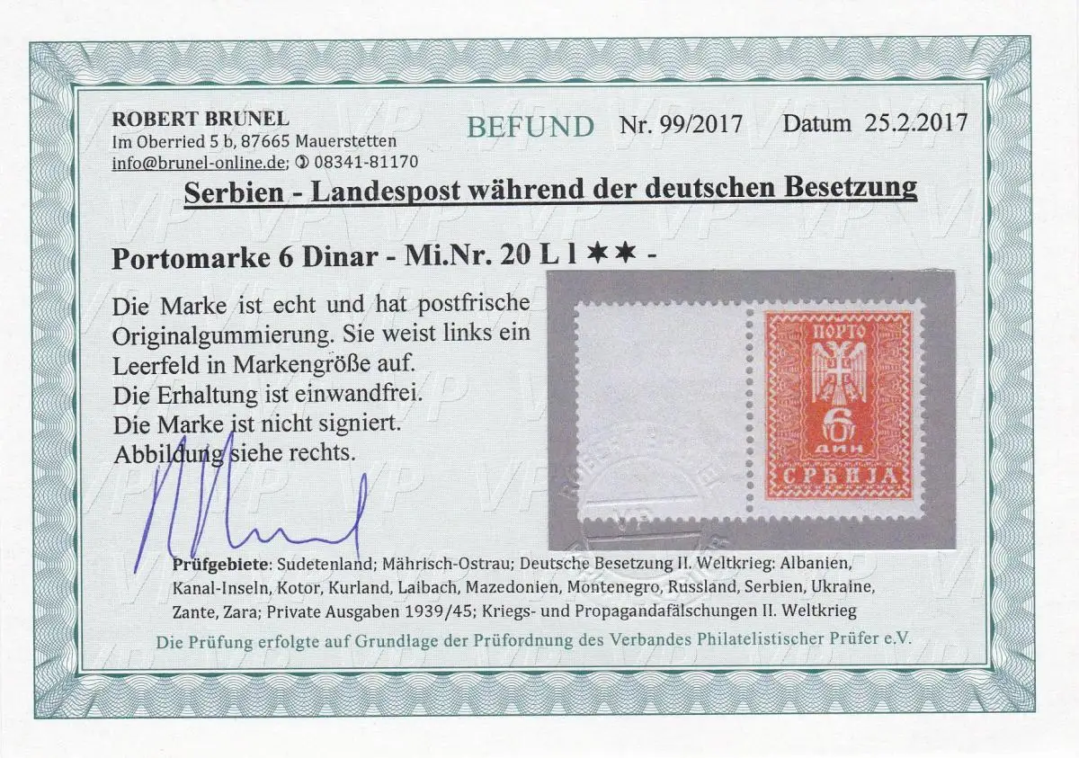 Serbie: Min. 19, 20 L1, frais de port **