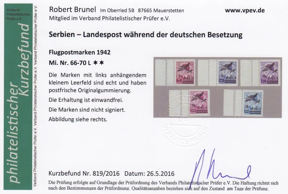 Serbie: Min° 66-70 L, frais post-porte avec champ vide