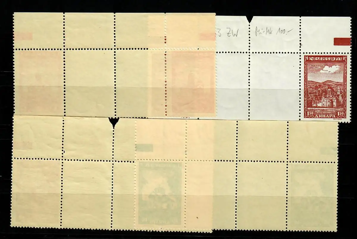 Serbie: Min° 72a, 73, 80, 81 Intercalaire, frais, **