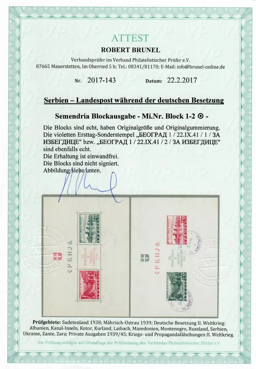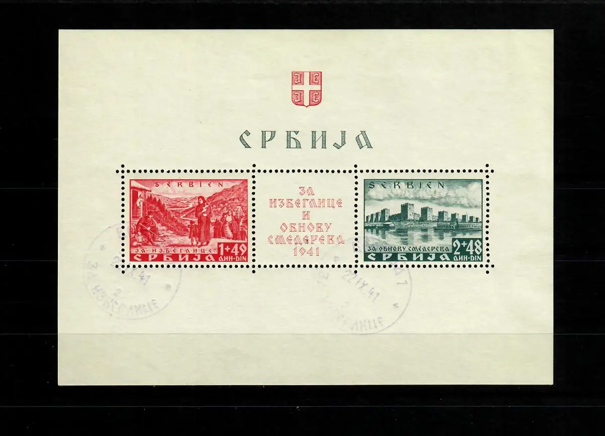 Serbie Min. bloc 1-2, cacheté 22.9.41