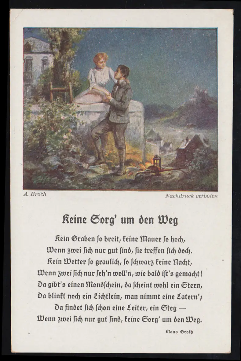 Série colorée AK Lyrique 38 - A. Broch: Couple d'amour, chanson populaire: Pas de fossé aussi large