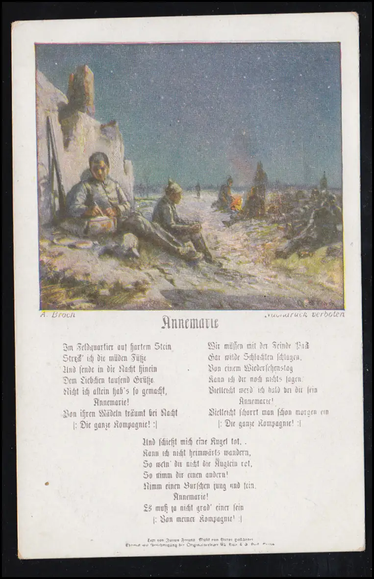 Série colorée de poésie AK: Lettres sur le front - Annemarie, non utilisé