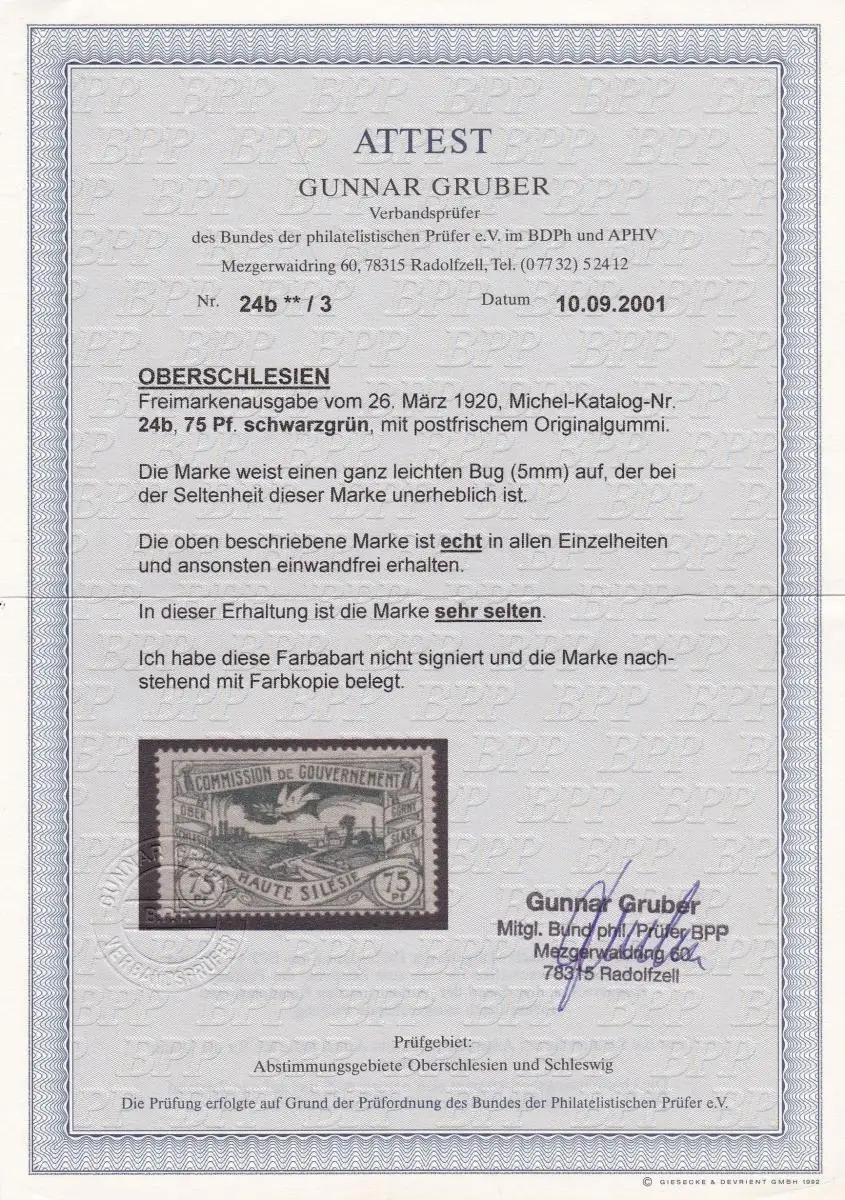 Silésie supérieure: Min. 24b, frais de port **, BPP Attest