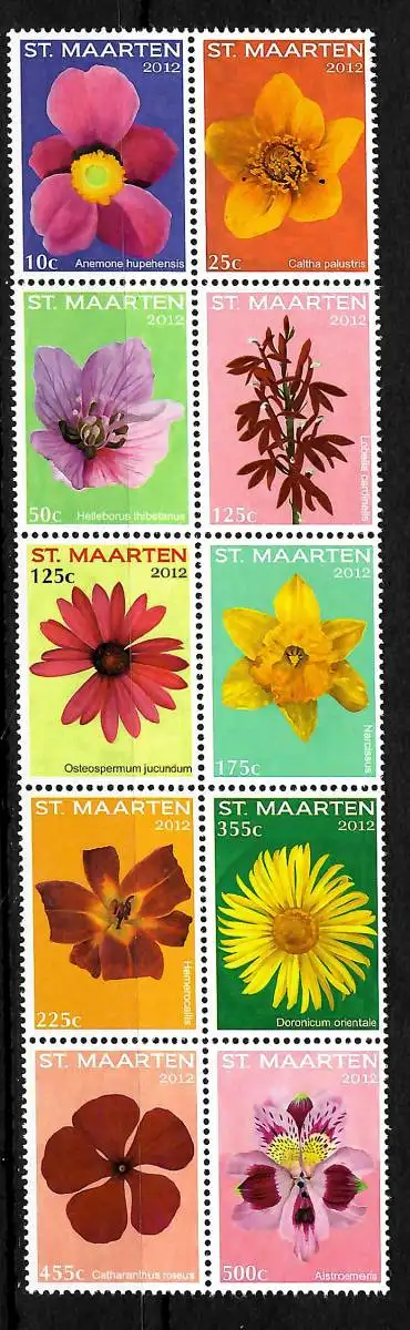 Sint Maarten: Fleurs, 10 timbres consécutifs, frais de port
