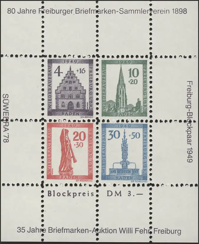 Impression spéciale FAKSIMILE SÜDWEBRA 1978 Franz. Zone Baden Bl.1A **