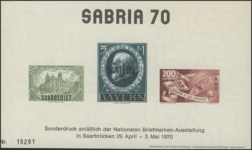 Impression spéciale Germania & Bayern & Saar SABRIA 1970, ** FAKSIMILE
