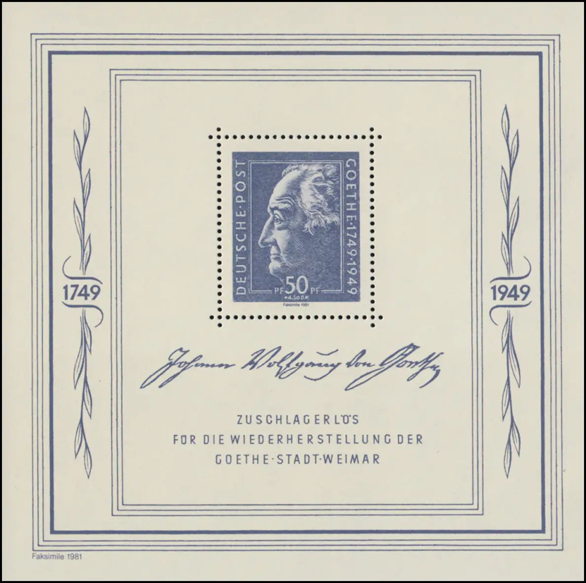 Impression spéciale bloc Goethe de la SBZ 1949 FAKSIMILE 1981