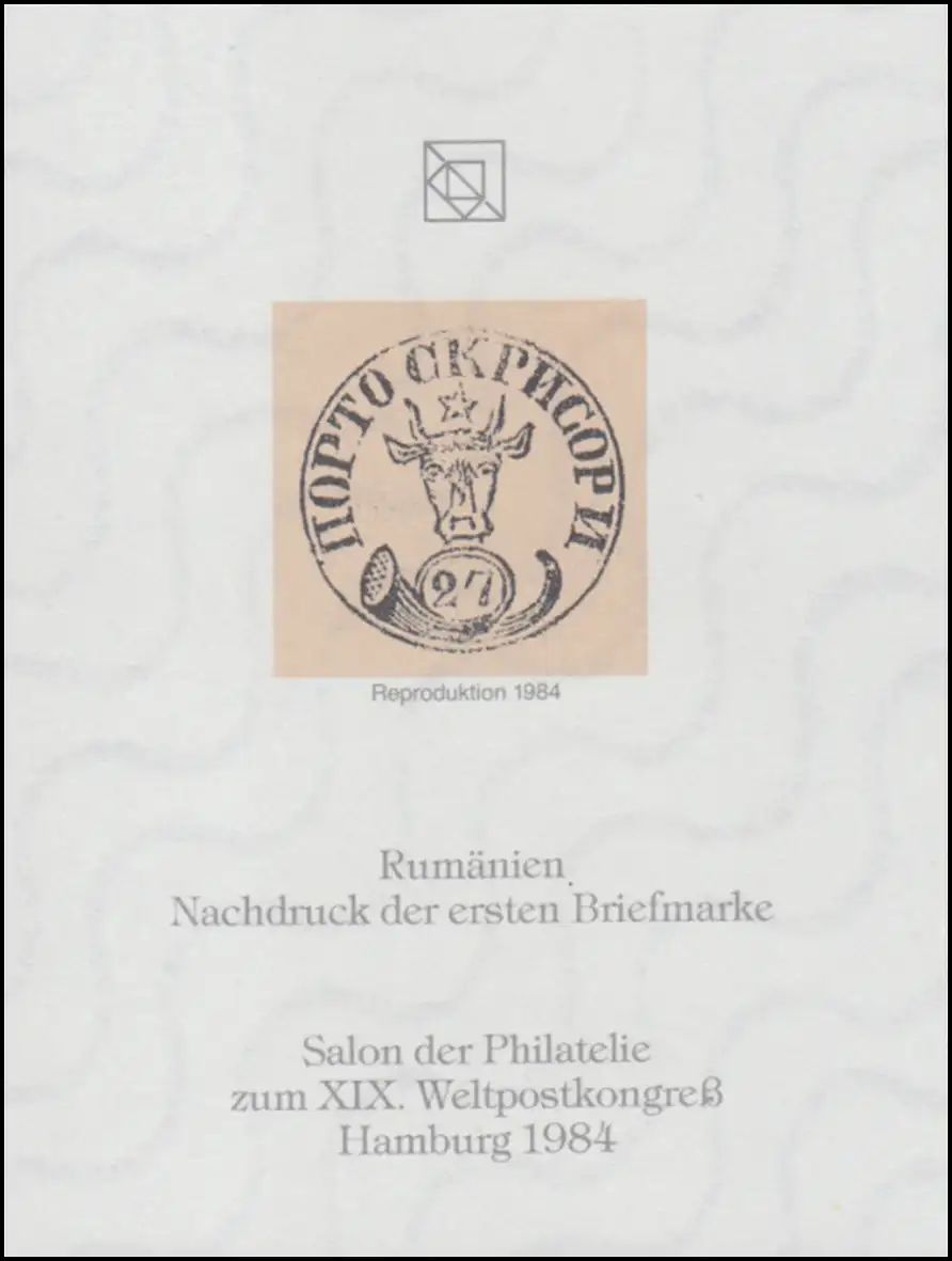 Impression spéciale Roumanie n° 1 Nouvelle impression Salon Hambourg 1984 FAKSIMILE