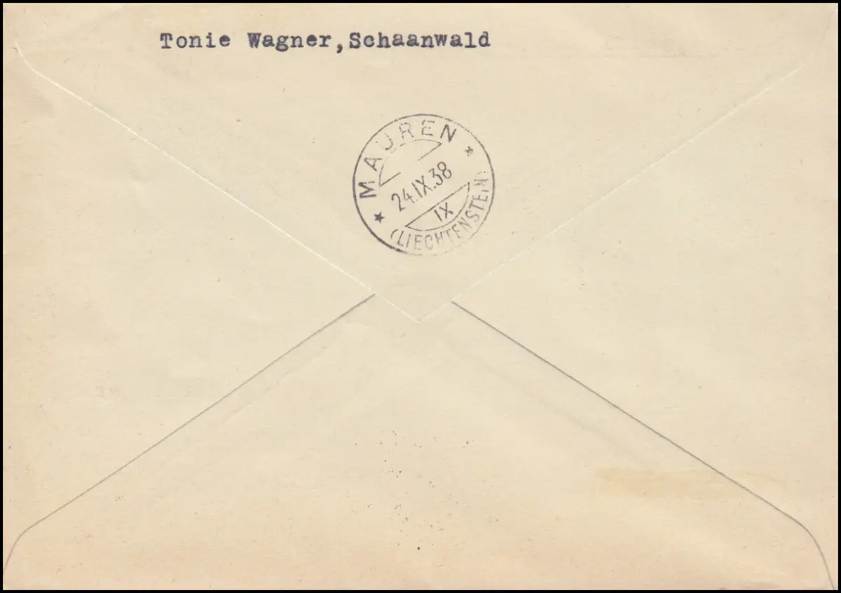 Vol spécial Aarau-Bellinzona Exposition des timbres Aaraur R-Lettre MAUREN 12.9.38