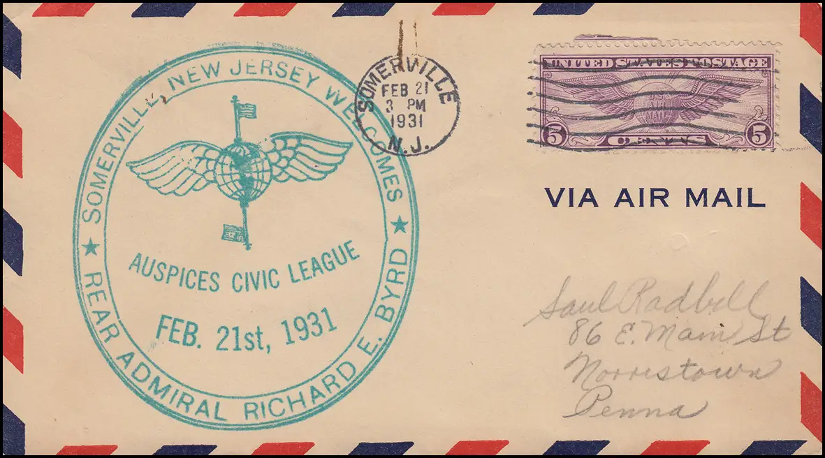 Vol spécial Rear Amiral Richard E. Byrd Auspices Civil League Somerville 21.1.31