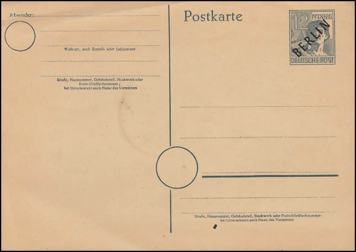 Carte postale spéciale P 2d noir BERLIN sur 12 pf., non utilisé / rs. SSt