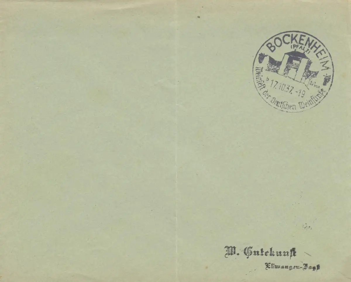 Tampon spécial 1937, Bockenheim/Pflaz Weinfest dt. Weingstraße