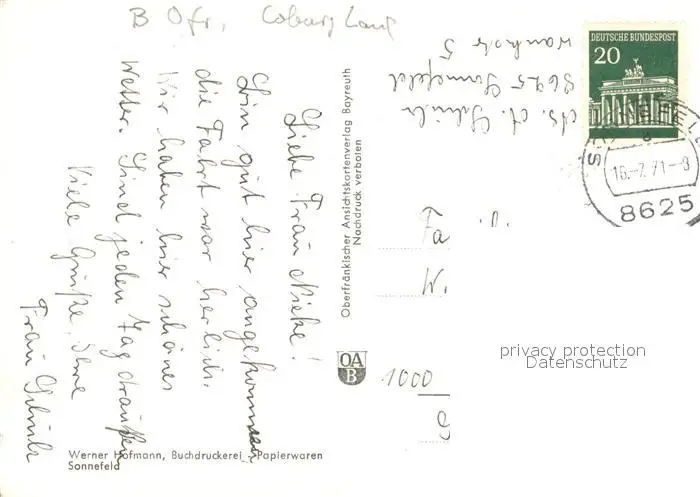 Sonnefeld Ortsansichten Partie am Wasser Schwimmbad Sonnefeld postalisch gelaufen 1971 Erhaltung siehe scans [FriedD77] Frierer