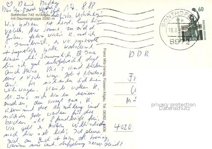 Sonthofen_Oberallgaeu mit Daumengruppe Sonthofen Oberallgaeu postalisch gelaufen 1988 Erhaltung siehe scans [WerneD78] WernPID7