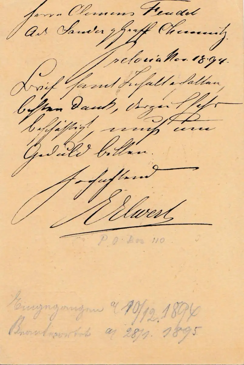 Afrique du Sud: 1894: post card Pretoria to Chemnitz