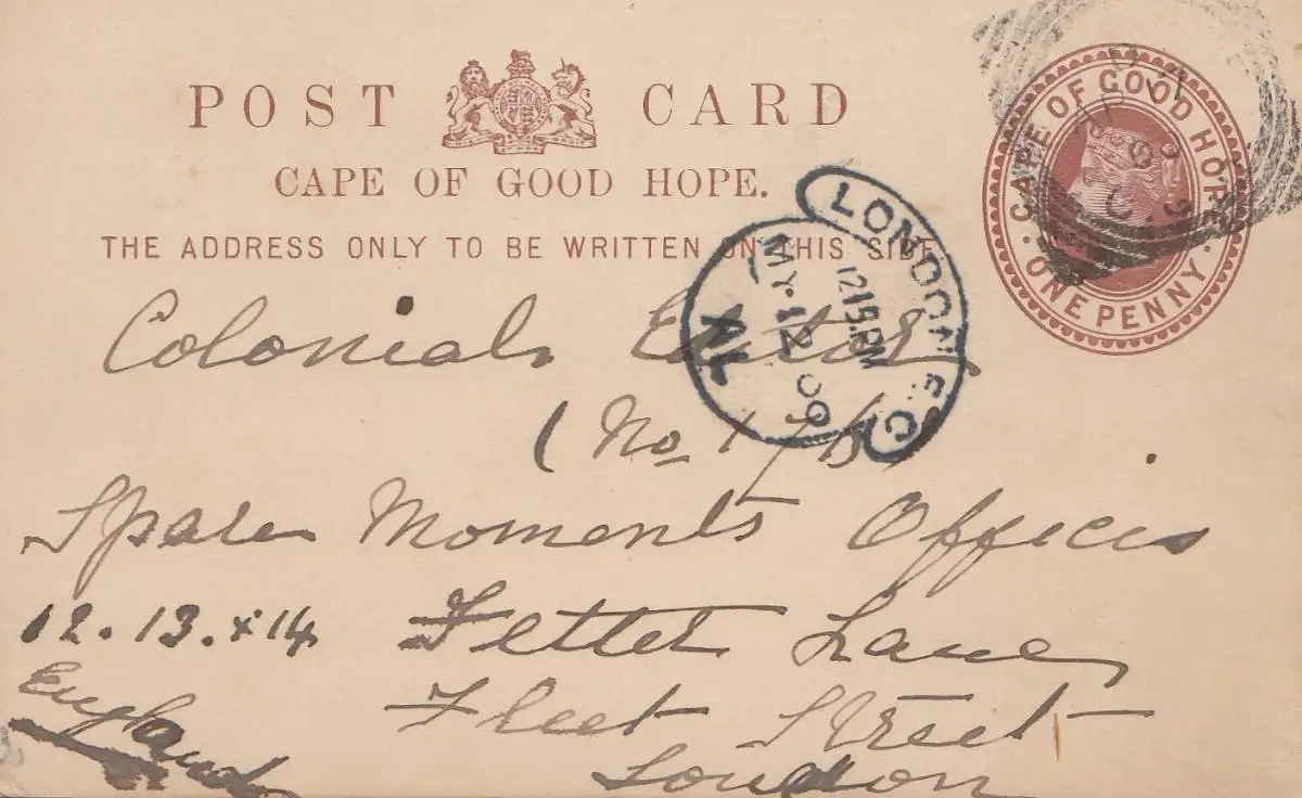 Afrique du Sud 1909: carte postale Cap Colony to London