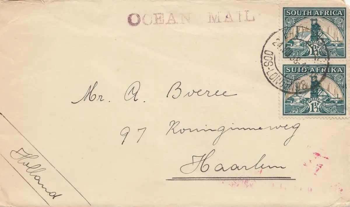 South Africa 1958: East London - ocean mail - to Haarlem/Holland