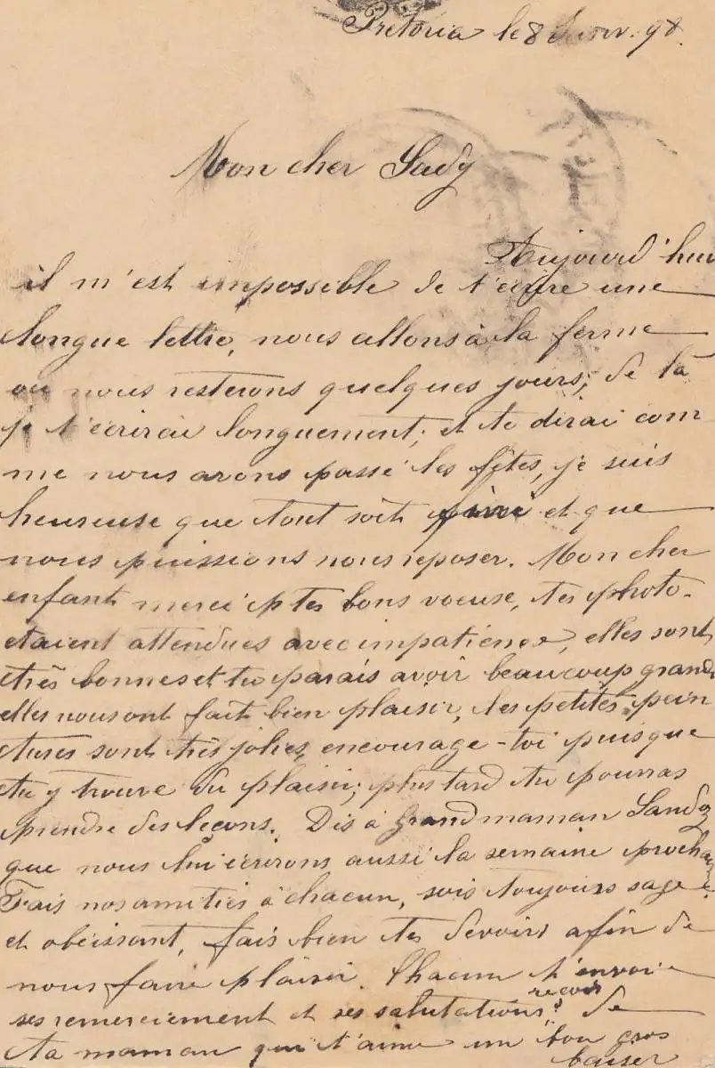 South Africa post card 1899 Pretoria to Loele/Switzerland