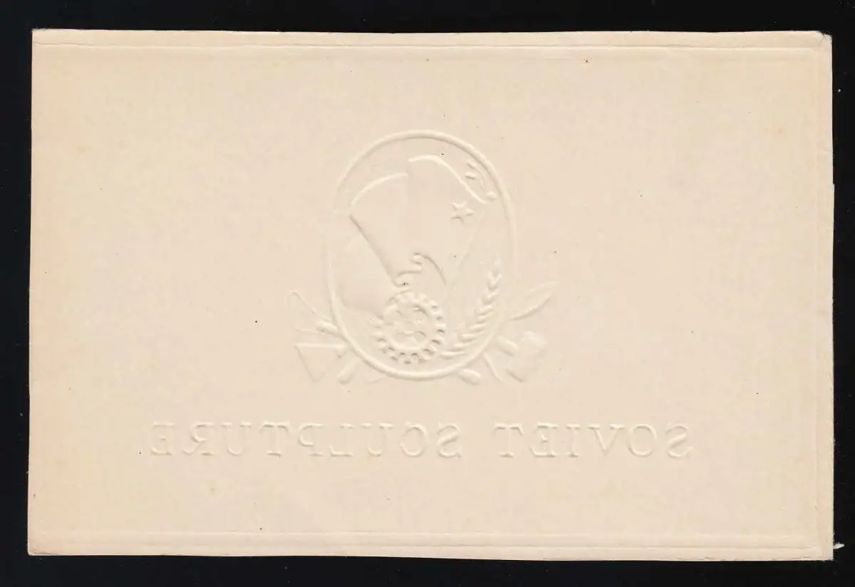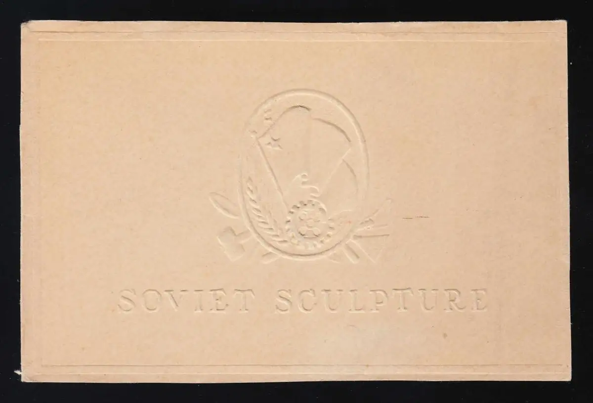 Soviet Sculpture, carte de marquage avec marteau, épis, roue dentée et drapeau, inutilisé