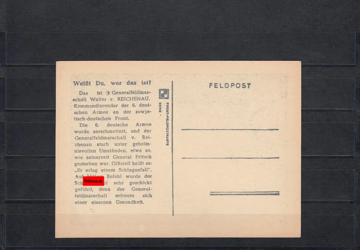 Popaganda soviétique carte pour l'Allemagne Min. 21 D V, non utilisé