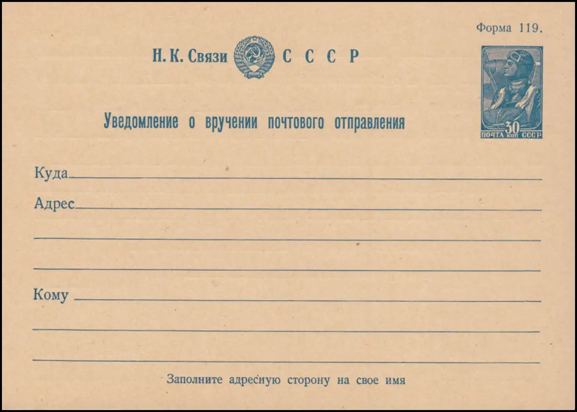 Union soviétique retour 2 avions 30 kop. bleu, sans chiffre, **