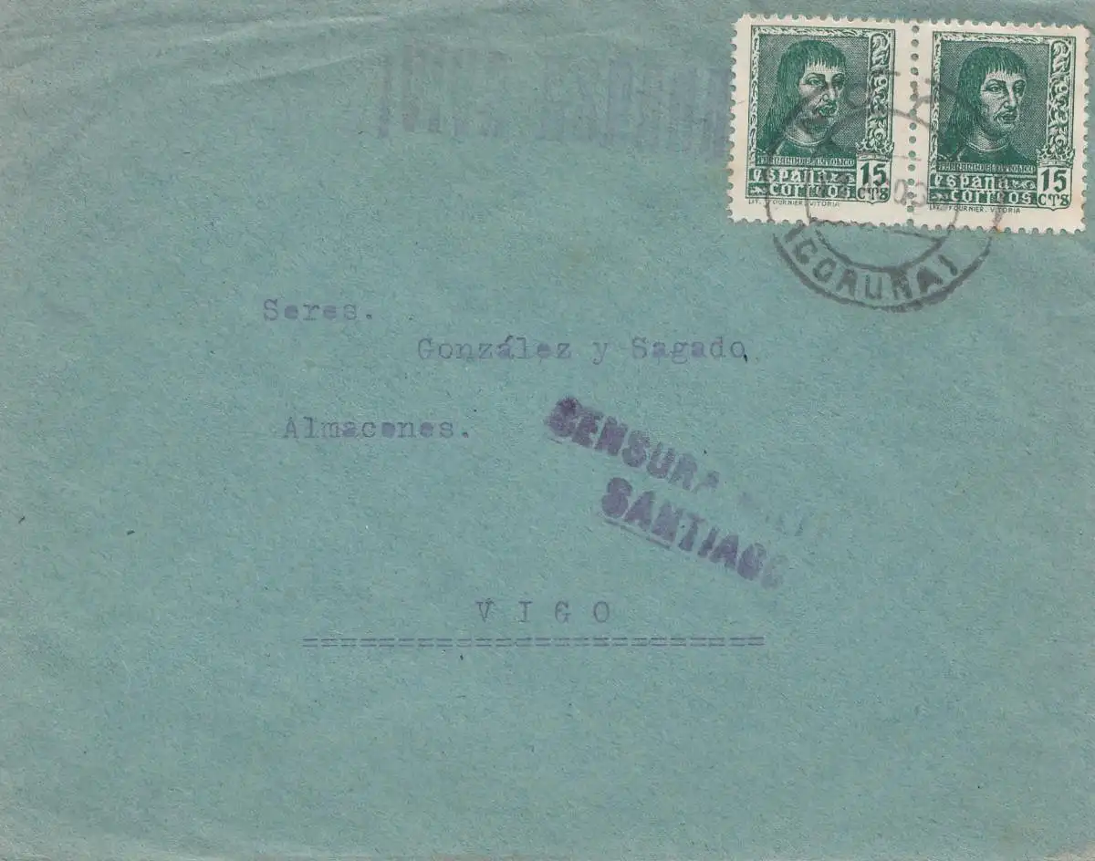 Espagne: 1940: Lettre de Santiago à Vigo, censure