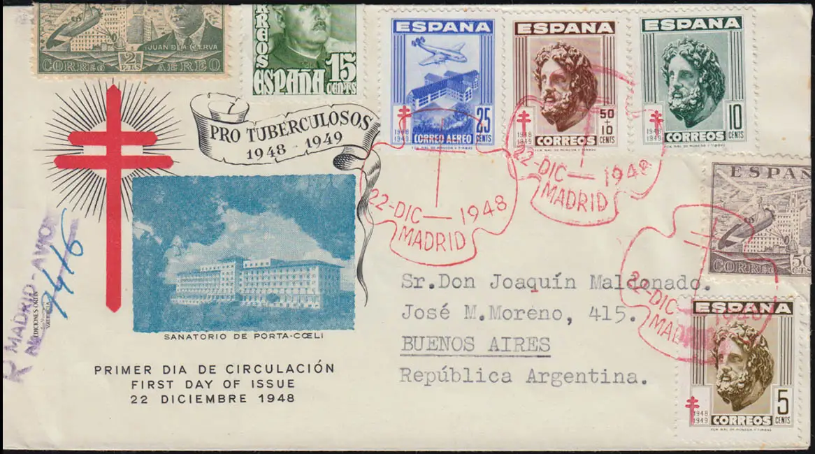 Lutte contre la tuberculose - Marques 968 avec les 3 timbres obligatoires de l'État ZC 45-47 en lettre recommandée à l 'étranger, lettre de premier jour pour les 4 timbre (!) vers Buenos Aires en Argentine Numéro de catalogue: 1968+ZC45-49 Examen: original Référence produit: milliard026399>p>Remarque: Cet article n'est disponible qu'une seule fois. Vous recevrez exactement l l\'article illustré.