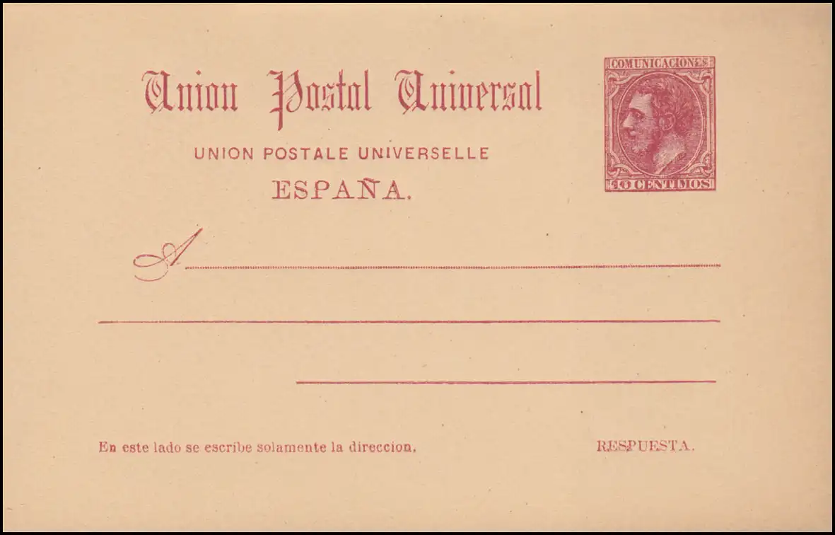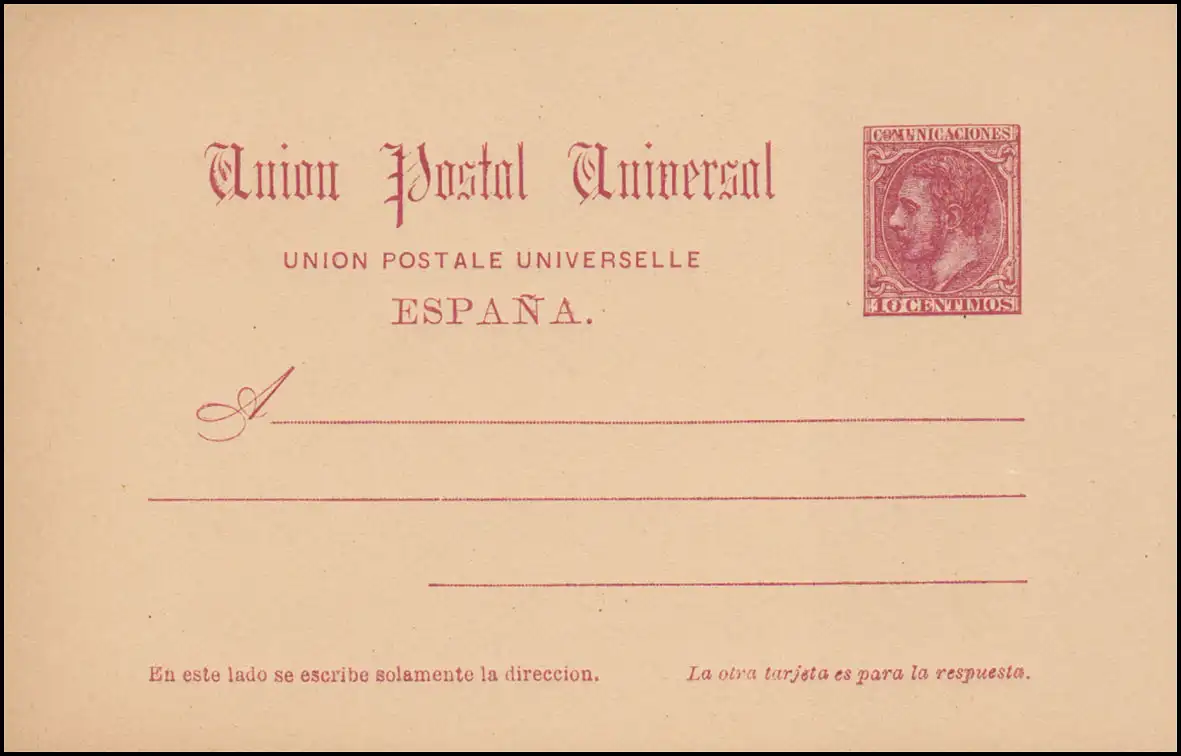 Espagne Carte postale P 13 Roi Alfons XII. Carte double 10/10 Centimos, non utilisé
