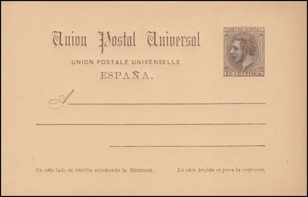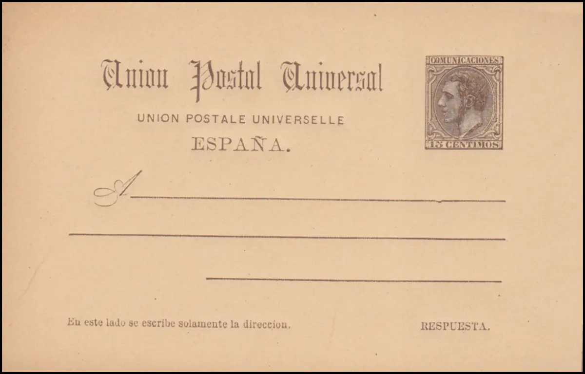 Espagne Carte postale P 14 Roi Alfons XII. Carte double 15/15 Centimos, non utilisé