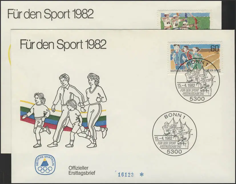 Aide sportive 1127-1128 deux FDC en 1982 - Volksfunk et tir à l'arc