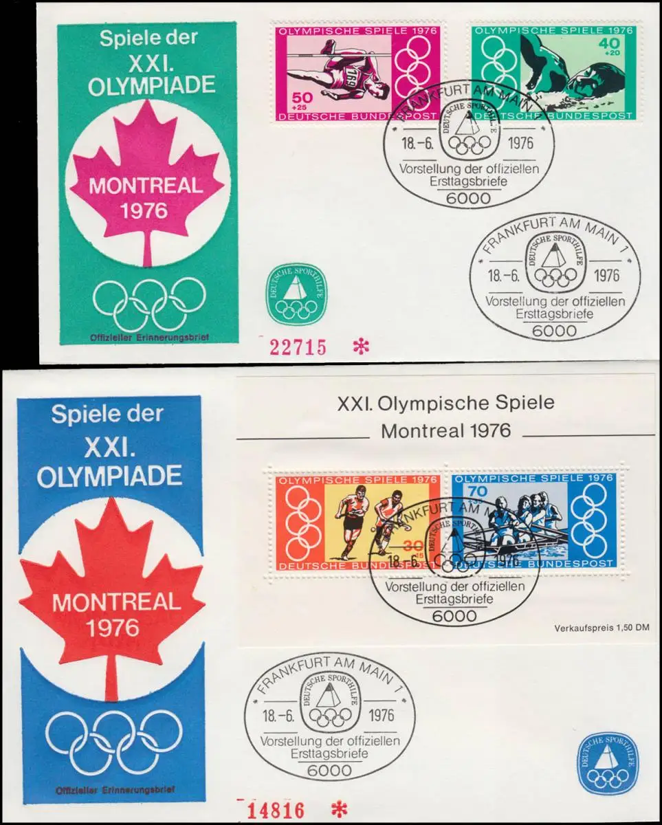 Aide sportive 886-887 et bloc 12: deux lettres officielles SSt Frankfurt/M. 18.6.76