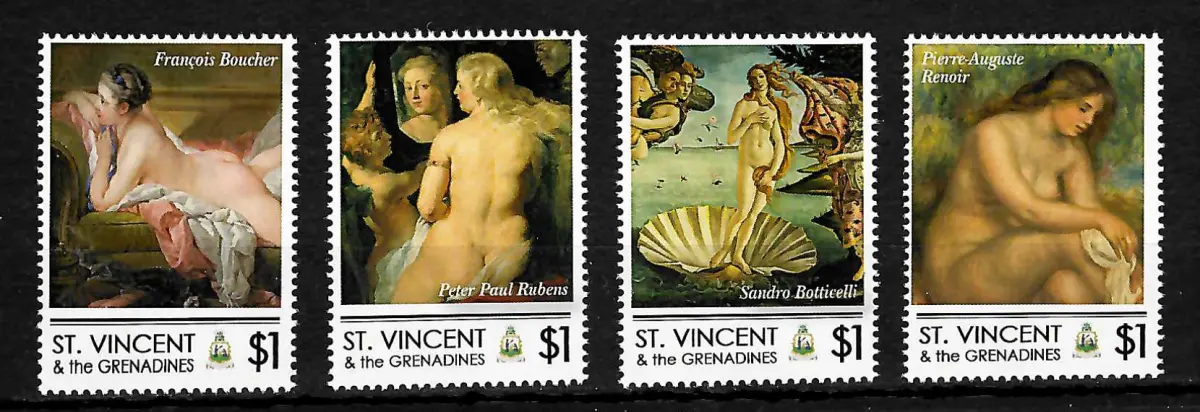 St. Vincent: Erotische Gemälde, Renoir, Rubens, Boucher, Botticelli, postfrisch
