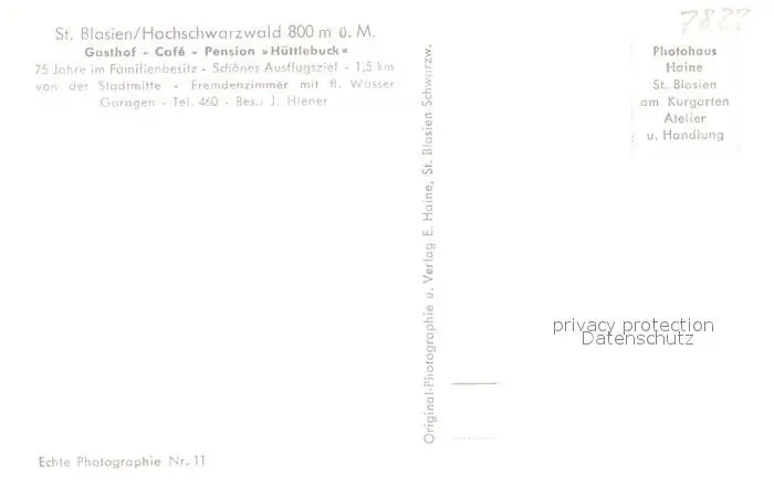 St_Blasien Gasthof Cafe Pension Huettlebueck St_Blasien postalisch nicht gelaufen 1921-1965 Erhaltung siehe scans [KathaD81] Kathoren